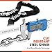 Premium Quality: Our security chains are made of hardened steel with a special anti-corrosion coating which makes them ideal for outdoor use. Each link has a thickness of 1/4", inside height of 1 1/8" and inside width of 3/8".This chain requires 4 tons of cutting force to break through the hardened steel.
