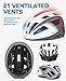Lightweight & Breathable: Our cycling helmet is only 340g / 0.75 lb and is designed with 21 air vents, which will not give you any pressure on your head at all, and the cooling vents can move airflow over and you will feel cool and dry when cycling.