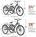 【Tire&Saddle】26 inch suits riders between 5'1" & 5'6";27.5 inch suits riders between 5'5" &6'1". The tires are made of non-slip and explosion-proof materials.It has strong grip and puncture resistance. Wide bike seats for women comfort is adjustable,breath and no-slip.