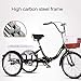 DURABLE HIGH-CARBON STEEL FRAME:The 3-wheeled bike is constructed from high-carbon steel with thicker frame tube for strength and durability. It can support rider and cargo combined weight up to 331 lbs.It ensure the safety and stability of driving, and the frame will remain firm and stable.
