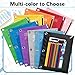 Colorful Poly Binder Pocket: 6 Assorted colors, transparent blue, green, yellow, purple, pink, and clear(each color with 2). It’s easy to organize and distinguish your paper with a different color.