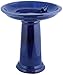 Generous, ceramic bird bath and pedestal with deep blue finish