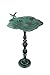 Brave birds will love to stop by this curious cat's bath to take a drink or wet their feathers. Made from aluminum with a beautiful and unique green and gold finish, this outdoor birdbath features a cat looking up to the birdbath basin, and a small birdie sculpture on the edge of the bowl. Fill it with water in your yard and enjoy watching birds flock to it.