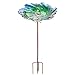 Bird bath is designed with handmade glass with beautiful green pattern, and metal stake base is upgraded to four-pronged bottom, which greatly increases the stability of birdbath
