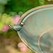 Solar Fountain--Little solar fountain sends the cutest arch of water when the sun hits. The rim has little oval cut-outs, so the smaller birds can grab it with their toes when they lean over to get a drink.