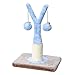 Y Shaped sisal scratching post with hanging swatting toys in baby blue and tan coloring