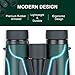 Durable, non-slip & Waterproof: These bird watching binoculars for adults are made of a rubber-armored coating and leather, which ensures that they remain firmly in your hands without the risk of slipping or accidentally falling, and are comfortable to hold and use. The O-ring sealed optics, along with the coating, prevent debris and moisture from getting inside the binoculars, ensuring durability and a firm grip.