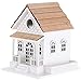 HAPPY BIRDS, HAPPY LIFE - Our decorative bird houses are fully functional and intended for outdoor use. Includes a 1.2” opening, ventilation, floor drainage, and an unpainted interior. The sloped roof protects the house from the elements, offering birds a safe place to call home in winter.
