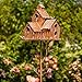 🐦Unique Design: Features with a reclaimed faucet welding in front of small house. A butterfly and leaves surround the tall mounting pole.It enrich this nature bird houses new meaning and life when small birds roosting on this faucet.