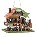Let the call of the wild welcome birds into your yard with this adorable log cabin birdhouse. Fashioned after a vacation rental in the heart of the wilderness, it features rustic accents, including a moose head sign, rope fencing, and a cute black bear cub on the prowl.