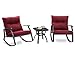 ★【COMFORTABLE ROCKING CHAIRS】This patio bistro sets features an elegant glass top side table perfect for a couple of glasses of wine or the morning coffee and newspaper. Added rocking feature to rock yourself into a state of relaxation.
