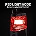 5 LIGHT MODES | High 360° (500 lumens): 3.5 hours / 15 meters | High 120° (175 lumens): 9 hours / 13 meters | Low 360° fully dimmed (40 lumens): 10 hours / 4 meters | Red High (15 lumens): 12 hours / 3 meters | Red Low (2 lumens): 30 hours / 1 meters