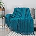 TEAL BLUE KNITTED THROW BLANKET: Made of 100% premium acrylic, PAVILIA textured throw blanket is super soft, cozy and lightweight. The fringe blanket is silky smooth to touch, warm, and versatile for all season use. Perfect for all year long, the knit blanket keeps you comfortable in spring and summer and warm enough as layers during winter and fall. With its ultimate comfort, this woven blanket makes a decorative home essential gift for women, men, kids, boys, and girls.
