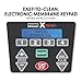 Easy-to-clean, electronic-membrane keypad with blue backlit LCD screen