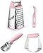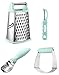 Box Grater has sharp Stainless Steel blades. Shred and slice cheese & vegetables with 4 unique sides: Coarse, Medium, Fine grating/Zester & Slicer. Make dinner exciting again by peeling, grating, slicing & making fresh zest to take your meals to another level. Removable rubber bottom keeps you safer and prevents slipping and sliding on your counter, cutting board or plate.