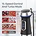 15-SPEED CONTROL AND TURBO MODE: The hand held blender features a 15-speed control plus a turbo boost mode. 15 speeds give you options and allows for precise control over a variety for all blending needs. The TURBO mode allows for the extra boost of power when needed.