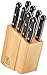 ALL IN ONE: 12 piece set includes a 3. 25" Parer, 5" Utility, 7. 75" Bread, 7. 75" Chef, 8" Slicer, 6 - 4. 50" Steak knives, honey maple-stained wood block.