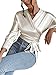 Feature: V Neck, Longline, Tie Front, Wrap, Cropped Length, Satin Blouse Shirt Top
