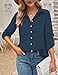 ❤Adjustable Sleeve Design: This plain shirts for women is comfy and casual as ever, with no sacrifice of sleek style! Get chic, effortless style with the tops. The styling possibilities are endless with the tops for women! This flattering womens work tops have several options: 3/4 sleeve, rolled-up sleeve and long sleeve. You can roll them up or button them up according to different weather, occasion and outfit needs.