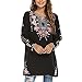 【FEATURES】: Loose Blouse for Women 3/4 Sleeve Tops Pullover Boho Shirts. These Embroidered Tops for Women feature Intricate Bohemian Floral Embroidery along the Neckline, Cuffs, Chest, and Shoulder, setting you apart with a Unique Traditional Mexican Peasant Embroidered Design.