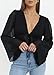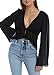 FEATURES: Long Sleeve crop blouse for women, deep v top, tie front, long flowy sleeve, solid color, high low cut, ruched, flared hem, beach cover up shirt, peplum