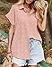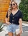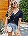 The short sleeve top is solid color, unique button down design is easy to wear, you could also tie the buttom of button shirt in a knot at waist, pair with a high waist jeans for a date look
