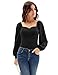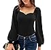 【Feature】Sweetheart neckline, long lantern sleeve, square neck back, soft and stretchy fabric, women retro blouse. The material is so soft and doesn’t shrink or stretch out when washed.