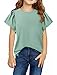 【Design】: This girls' casual pullover short-sleeved top, layered ruffle design, fashionable and cute; round neck design, easy to put on and take off; plain color, classic and versatile, accurate size, good quality, is a good choice for girls
