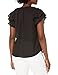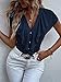 Fashionable blouse with button down, v neckline, ruffle trim and dolman cap sleeve for everyday wear, easy to put on or down