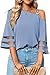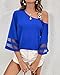 Cold shouler, mesh panel, 3/4 sleeve, bell sleeve, metal chain, solid, lightweight, flowy, soft, comfy, and skin-friendly, pullover, fitted blouse for women and girls.