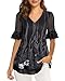 Design: dressy V Neck / trendy pleated front /flattering ruffle short sleeve blouses. Flowy /Loose Fit/wear feel like Sleeveless.