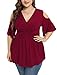 ❀【V Neck & Babydoll Style】This womens plus size short sleeve tops, feature v neck detail, a little low cut and tindy bit of cleavage showing, elegant yet sexy; middle empire waist belt as a decoration, make you look more slim. Cold Shouldersleeve created an elegant look and make you more feminine.This plus size shirts for women suit for spring & & fall.