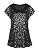 Front sequin deco,sparkle and shiny sequin shirts; Size XS=US 4-6, S=US 6-8, M=US 10-12, L=US14-16, XL=US 18-20, XXL=US 22 (please check the detail size chart in last image)