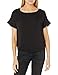 Henley top with ruffle hem and cap sleeves