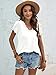 Unique design: Women's summer trendy tee designed with V neck, lace crochet short puff sleeve, loose fit, solid color, comfy waffle knit, casual and trendy style for women.