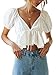 Women solid color crop top, deep v neckline , flare hem, puff sleeve blouse, tie back shirts, ruffle crop tops for women