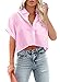 Crop tops for women trendy with lapel collar, short sleeve, button up front, crop top design make a chic look