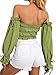 Shirred, elastic back, drawstring, square neck, short sleeve, ruffe sleeve crop top