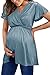 【Features】Short Sleeve / Wrap V Neck / Front Pleated / Adjustable Tie Back / Empire Waist / Elegant Fabric. This Summer Maternity Tops with trendy and unique design perfect for pregnant mama. Back adjustable drawstring and front ruched pleated make you look attractive and also has a lot of room for your baby bump belly. This Maternity Blouse is lightweight and comfortable to wear.