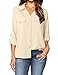 Stylish Design: Cuffed Sleeve,V Neck,Curved Hem,Pleated Front,Solid Color Blouse Shirt Top