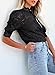 Womens tops summer feature with Lace, Short sleeve, Puff sleeve, Lining with a cami, Mock neck, Lace crochet floral textured, Back keyhole with button, Sheer mesh lace, Solid color, Casual and elegant style fits for any body shape, and a top necessary for women wardrobe.