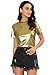 Multicolor, Metallic Shiny Tops, Short Sleeve, Round Neck.