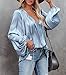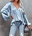 Feature: Womens sexy deep v neck blouse with drawstring, lantern long sleeve pleated silk satin shirt, casual loose solid chiffon pullover, simple design in a stylish cool silhouette, makes you look casual and chic.