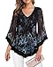 Plus size dressy tops for women for evening. Lightweight and comfortable, super soft chiffon shirts, wearing in fall winter spring. Women's Printed Boho Flared Short Sleeve and Long Sleeve Fall Blouse Top.