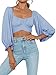 V neck tie waist puff sleeve crop blouse for spring and fall. Suitable for casual, holiday, beach, vocation, party, club, photo, dating.
