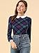 Contrast Peter Pan Collar, Keyhole Back, Contrast Trim Cuffs with button, Knitted Stretchy Fabric, Check Pattern