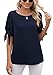 Features: short sleeve with knot cuffs design,crewneck,cut out sleeve,tie knot cuff,regular fit,casual style.It can be perfectly matched with any jeans you like.