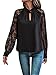 Long Sleeve, Pleated Keyhole Neck, Chiffon Patchwork, Soft and Elegant