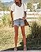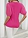 Unique design: Women's summer trendy tee designed with V neck, lace crochet short puff sleeve, loose fit, solid color, comfy waffle knit, casual and trendy style for women.