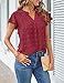 Features: Solid color, flowy short sleeve, split v neckline, swiss dot fabric, no lined, front and back pleated design, summer tunic shirt, breathable, loose fit, fashion dressy casual blouse, pull on closure.